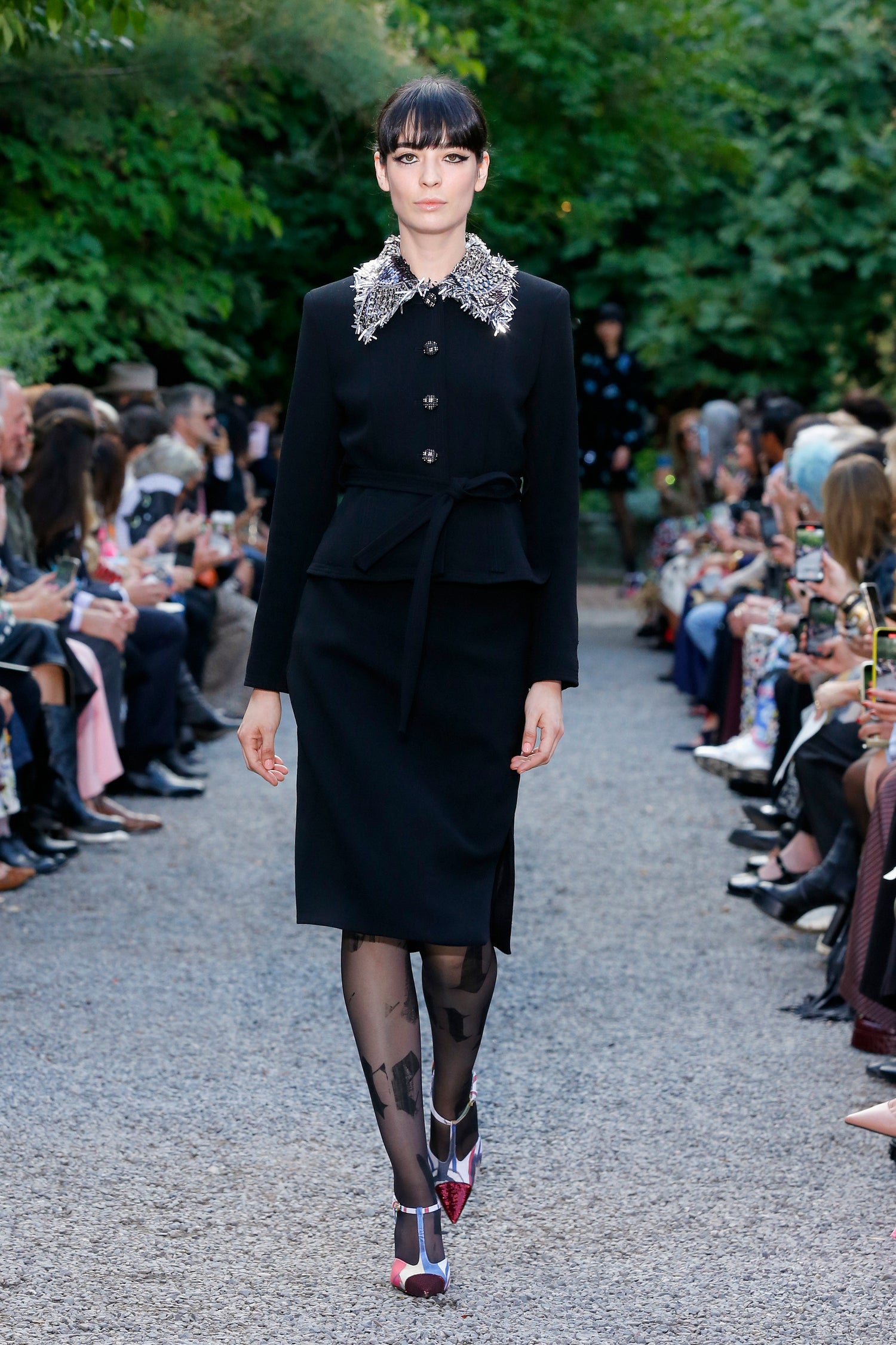 'JEWELRY COLLAR' EMBELLISHED BELTED JACKET
