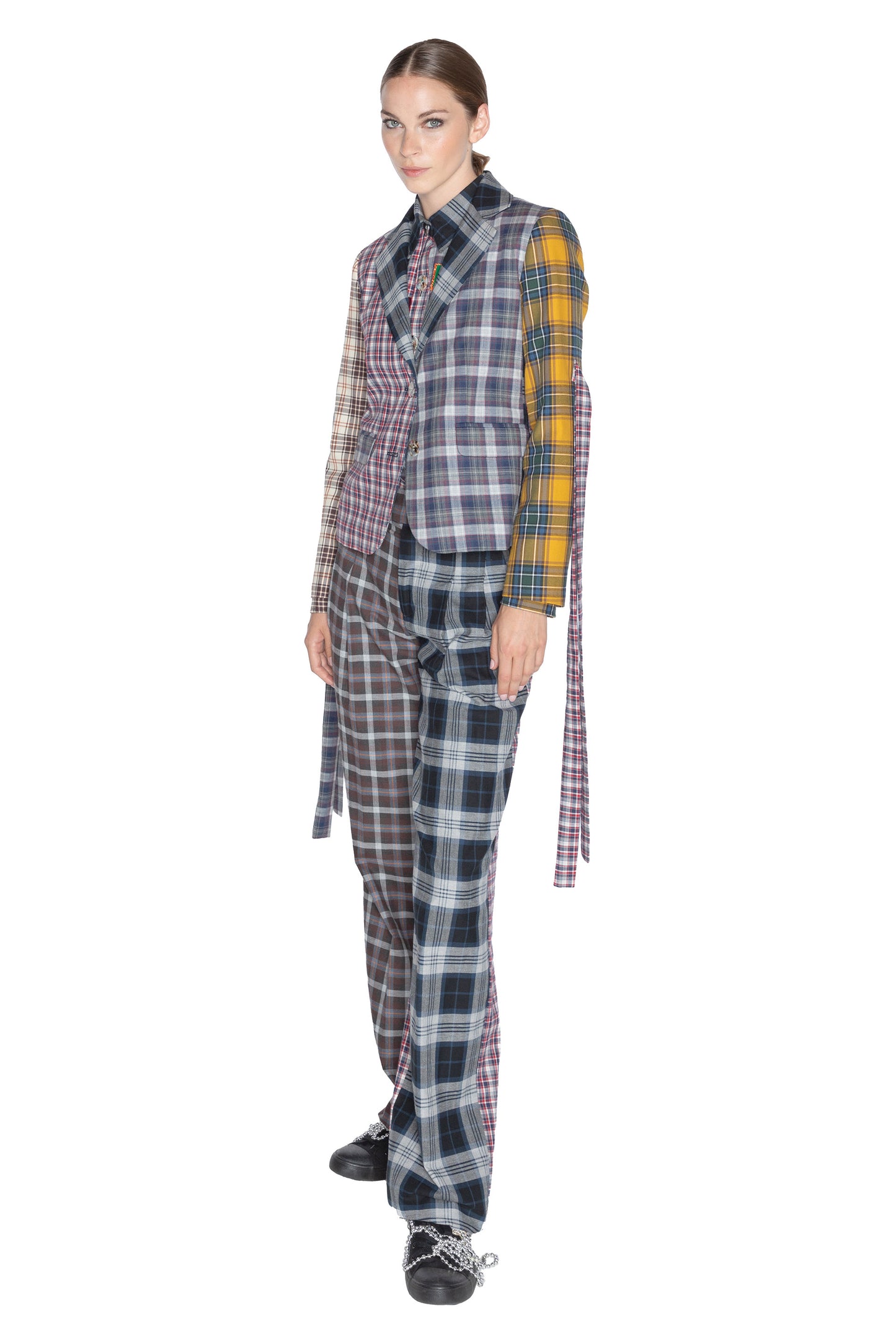 Breck is 5'10.5 and wearing a size small | Shown here with 'Vibrant Plaid Mixes' Baggy Trouser