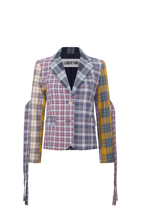 'VIBRANT PLAID MIXES' L/S SHORT JACKET WITH STRAPS